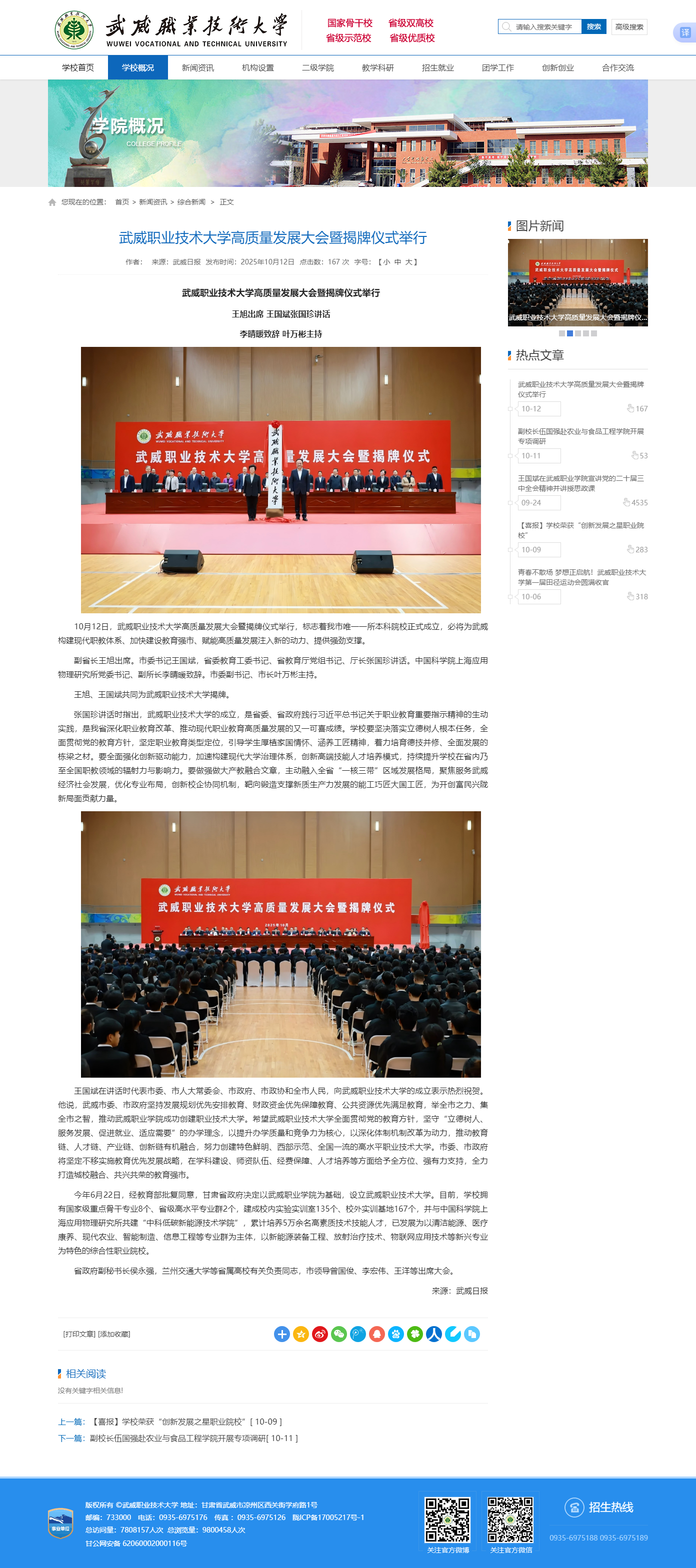 武威職業(yè)技術大學高質量發(fā)展大會暨揭牌儀式舉行