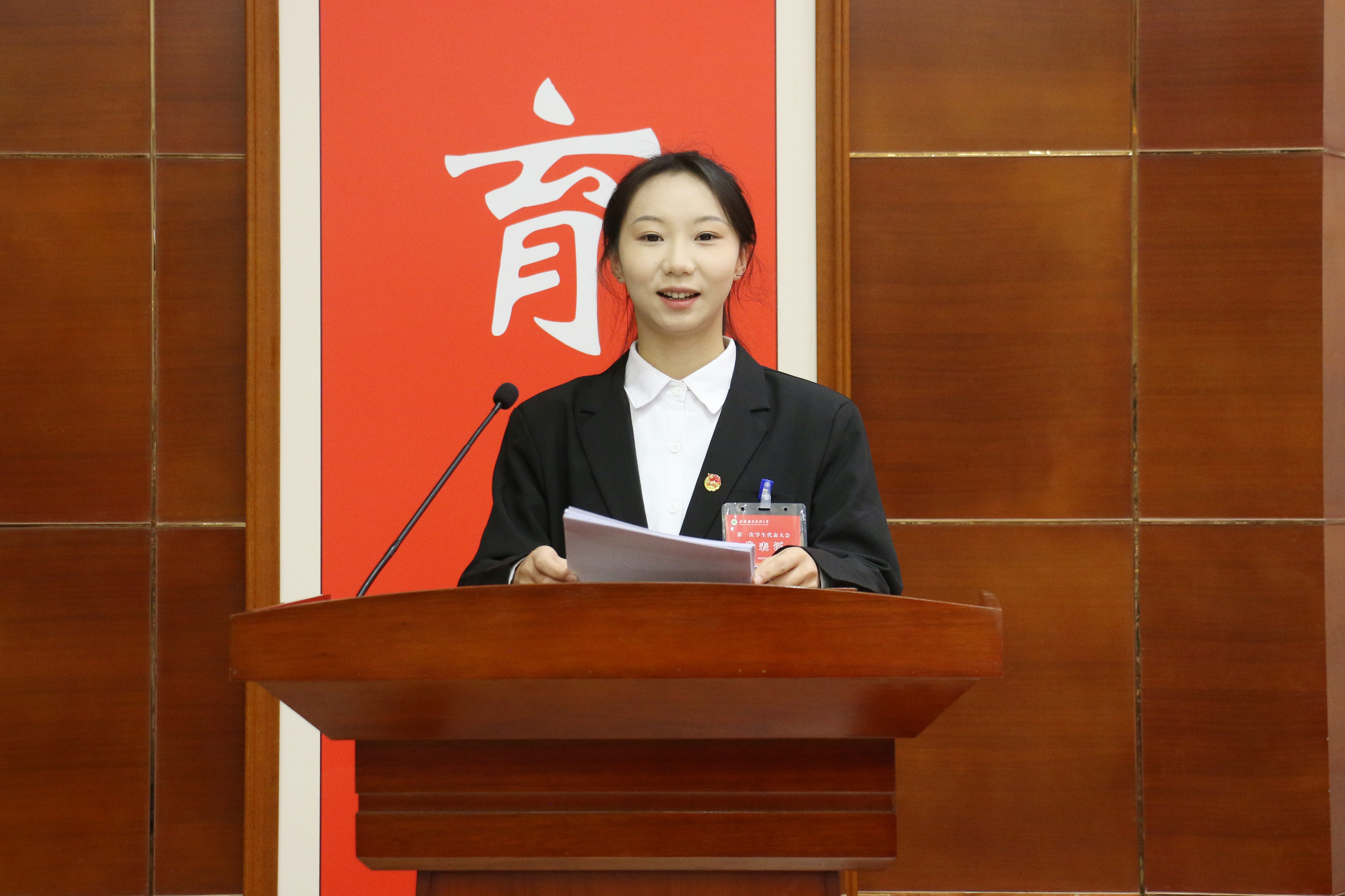 學(xué)校學(xué)生會主席團(tuán)成員李悅同學(xué)代表第十一屆學(xué)生會委員會向大會作題為《奮楫篤行啟新程 挺膺擔(dān)當(dāng)筑夢行,團(tuán)結(jié)帶領(lǐng)廣大同學(xué)在建設(shè)特色鮮明的高水平職業(yè)技術(shù)大學(xué)中貢獻(xiàn)青春力量》的工作報告。